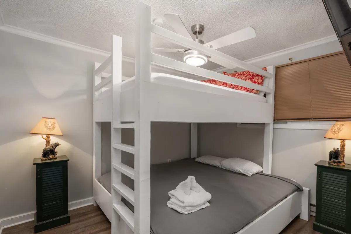 This spacious bedroom condo comfortably with king beds, custom bunk beds, and a sleeper sofa—perfect for families, friends, or groups seeking a relaxing mountain retreat.
